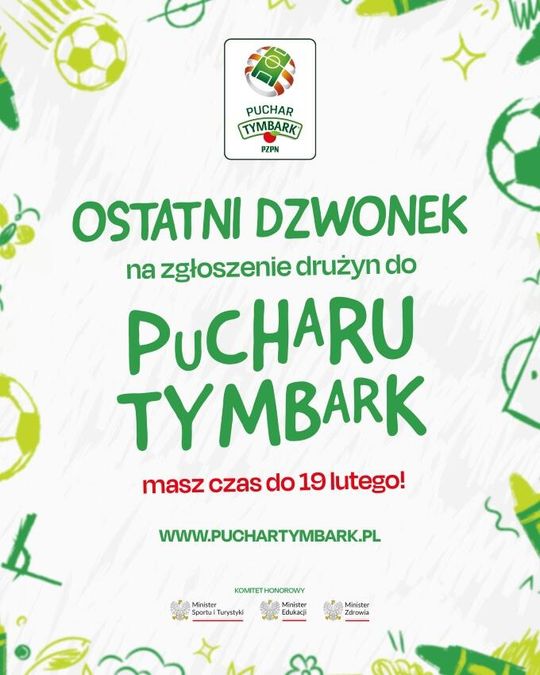 Zgłoszenia do XXVI edycji Pucharu Tymbark przyjmowane są tylko do 19 lutego poprzez formularz dostępny na stronie www.puchartymbark.pl, gdzie dostępny będzie również szczegółowy harmonogram rozgrywek. Drużyny mogą zgłaszać nauczyciele (m.in. przedszkolni, wczesnoszkolni i wychowania fizycznego), rodzice (za zgodą dyrektora szkoły) i trenerzy.