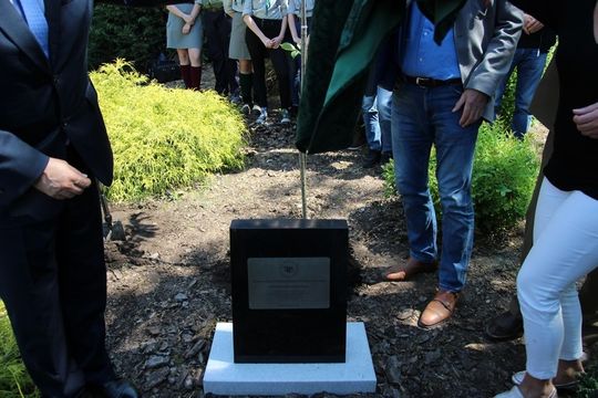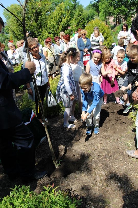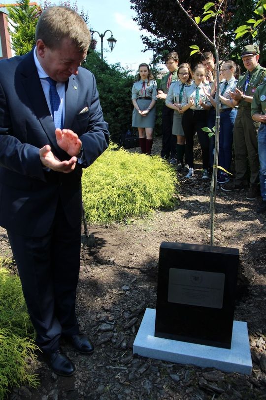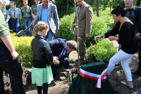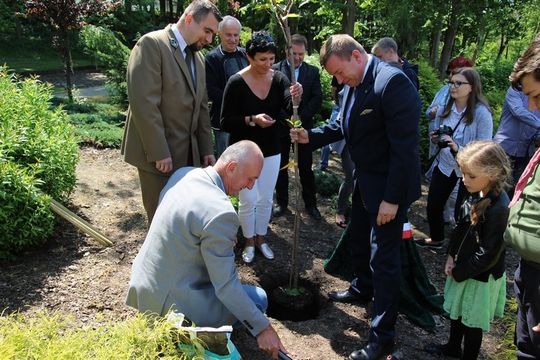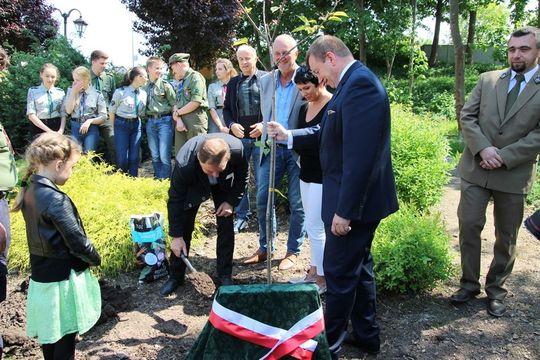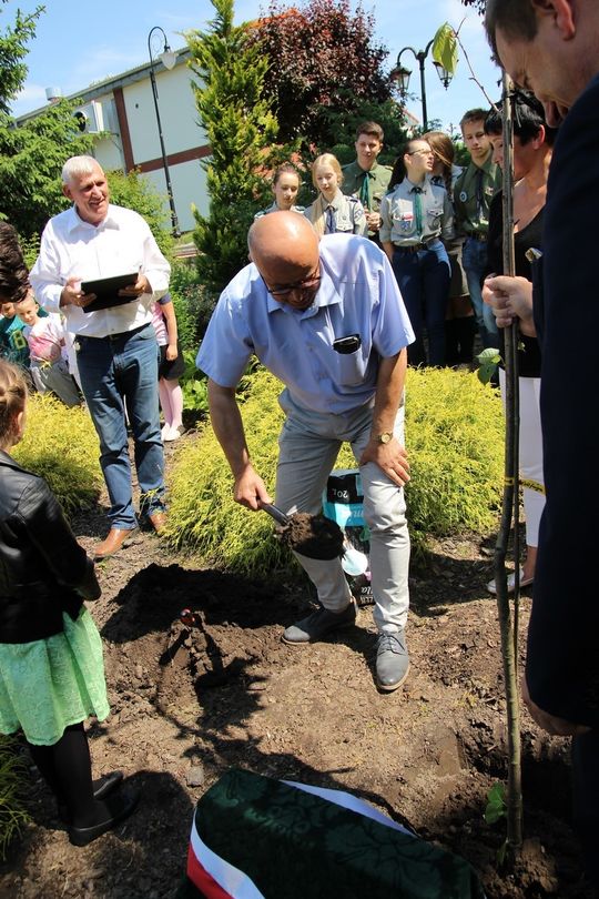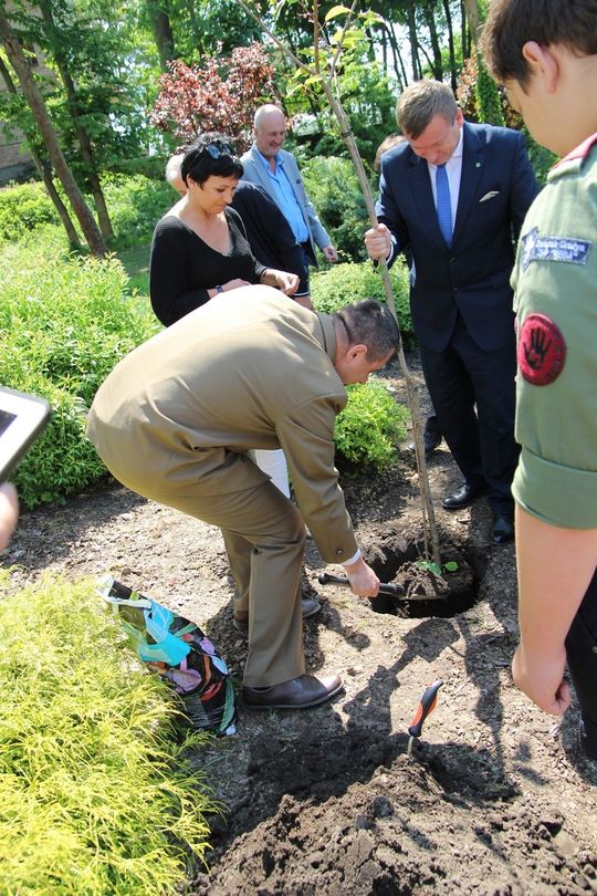 Akt posadzenia „integracyjnego drzewa” upamietniony został okolicznościową pamiątkową, na której wyszczególniono inicjatorów i uczestników tej wyjątkowej akcji.