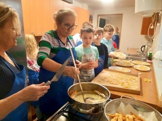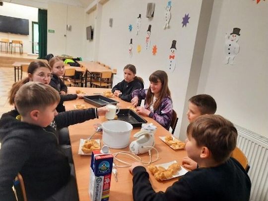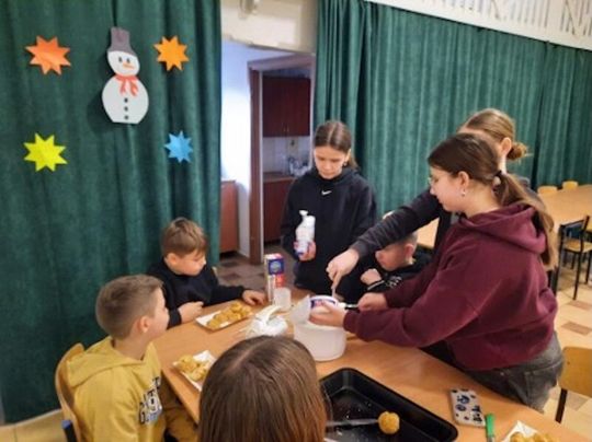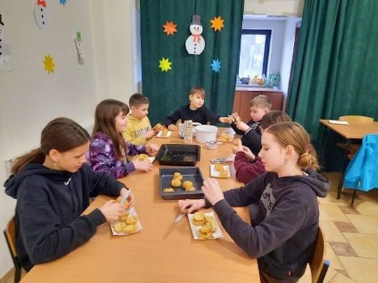 Tegoroczne ferie zimowe w PWD w Paprotnie były czasem pełnym radości, kreatywności i pozytywnej energii. Dzieci, które spędzały tu zimową przerwę od nauki, mogły nie tylko odpocząć, ale także brać udział w wielu ciekawych i rozwijających aktywnościach. Już na początku ferii uczestnicy wspólnie z wychowawcą przygotowali plan dwutygodniowych zajęć, który obfitował w różnorodne atrakcje. Najważniejsze było połączenie ruchu z dobrą zabawą. Każdy dzień przynosił nową dawkę aktywności: gry zespołowe i integracyjne, twister, bilard, piłkarzyki oraz cymbergaj dostarczały wielu emocji i zdrowej rywalizacji. Nie zabrakło również muzycznych akcentów — karaoke przyciągało małych wokalistów, a turniej gier stolikowych dostarczał solidnej dawki śmiechu i intelektualnych wyzwań. W kuchni również wrzało od pomysłów. Dzieci rozwijały swoje kulinarne talenty, przygotowując tosty, minipizze, amerykańskie ciasteczka, a w Tłusty Czwartek przy pomocy pań z rady sołeckiej wykonały pączki i chruściki.
