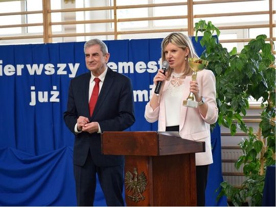 20 lutego br. odbyła się uroczystość podsumowująca pierwszy semestr nauki w Zespole Szkół Publicznych w Karnicach. Wydarzenie otworzyły pełne energii występy taneczne uczennic karnickiej szkoły. Następnie przyszedł czas na najważniejszą część spotkania, czyli uhonorowanie uczniów, którzy poprzez ciężką pracę, zaangażowanie i systematyczność osiągnęli najwyższe wyniki w nauce. Dyrektor szkoły Monika Kocik wraz z Wójtem Gminy Karnice Lechem Puzdrowskim rozpoczęli ceremonię od tradycyjnego wręczenia pucharu dla najlepszej klasy. W pierwszym półroczu ten zaszczytny tytuł zdobyła klasa IV, która osiągnęła imponującą średnią 4,61. Uhonorowano także klasę z najwyższą frekwencją -klasę VI, której uczniowie wykazali się wyjątkową systematycznością i obecnością na zajęciach.