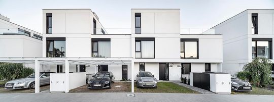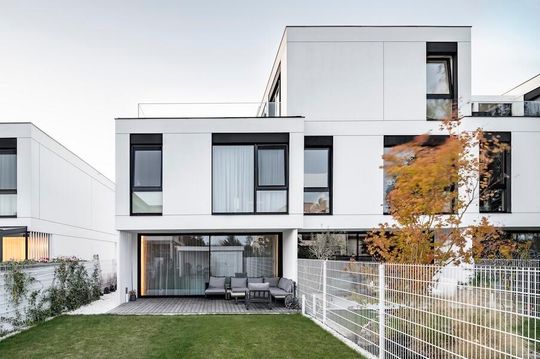 – Wyraz tektoniczny budynków kształtują wzajemne przesunięcia parteru i piętra, nadające bryłom dynamikę oraz subtelne zróżnicowanie przestrzenne. Wnętrza o wysokości 2,7 m oraz w pełni przeszklone ściany salonów z systemem przesuwnym HS budują relację pomiędzy domem a ogrodem – podkreśla Michał Wądołowski.