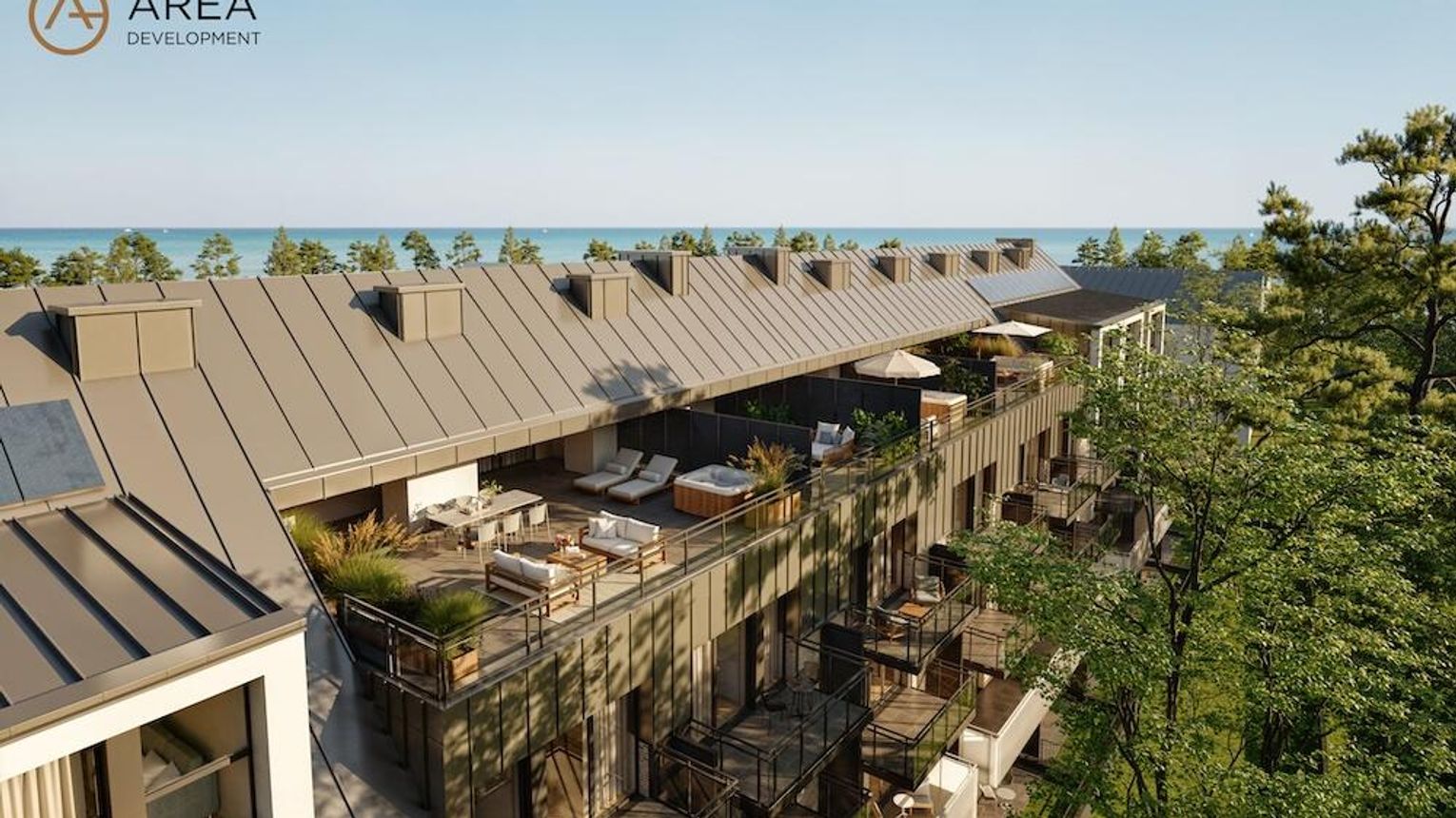 Dla poszukujących większej przestrzeni do wypoczynku przewidziano dwupoziomowe apartamenty, z wyraźnie wydzieloną strefą nocną na pierwszym i dzienną na wyższym poziomie. Z dwóch sypialni będzie można wyjść na przestronny balkon. Jednak największym atutem tych apartamentów będą duże tarasy o powierzchni nawet 86 m kw. wyposażone w prywatne jacuzzi w standardzie. Ta zewnętrzna przestrzeń w ciepłe dni stanowić będzie idealne przedłużenie salonu dające możliwość wypoczynku na świeżym powietrzu.