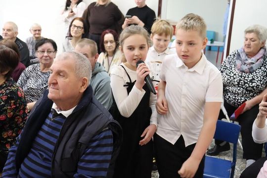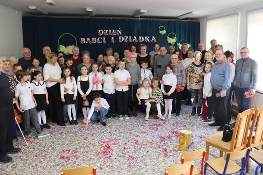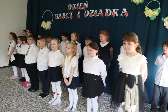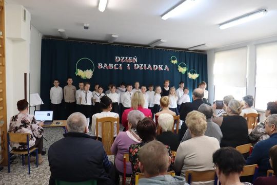 Uczniowie klas 1-3 przygotowali dla swoich dziadków ciekawy program artystyczny. Wnuki pięknie zaprezentowały się przed licznie zgromadzoną publicznością, popisując się piękną recytacją, śpiewem oraz rytmicznymi tańcami. Wielu wzruszeń dostarczył solowy występ ucznia klasy II – Mateusza Żarkiewicza. Po występie wnuki obdarowały dziadków pięknymi laurkami