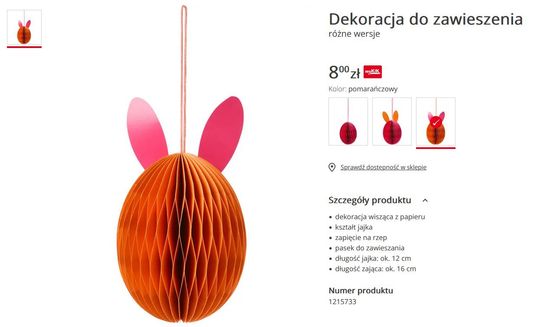 W KiK znajdziemy rożne zawieszki wielkanocne – od tych nakrapianych przypominjących przepiórcze jaja w różnych pastelowych odcieniach, przez styropianowe dodatki do malowania, po papierowe dekoracje do zapięcia na rzep w intensywniejszych kolorach różu, pomarańczy i zieleni. Szczególnie te ostatnie wyglądają bardzo efektownie i kosztują tylko 8 zł!