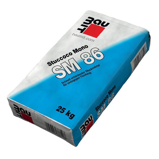 Baumit Stuccoco Mono SM 86 – jednowarstwowa zaprawa sztukatorska umożliwiająca przygotowanie profili prostych za pomocą szablonu, metodą ciągnięcia na elewacji lub na stole, polecana do reprofilacji istniejących elementów;