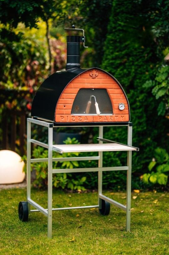 Co ważne, piec nie ogranicza się wyłącznie do pizzy – dzięki wysokiej temperaturze, jaką można uzyskać w komorze oraz kamiennej płycie możliwe jest przygotowanie w nim także chleba, a nawet pieczonej ryby. Dodatkowym atutem są kompaktowe wymiary urządzenia, które ma około 70 cm szerokości, dzięki czemu nie zdominuje przestrzeni ogrodu i nie wymaga stałej zabudowy. Ustawiony na lekkiej konstrukcji z kółkami może być swobodnie przestawiany w zależności od przebiegu spotkania. Jego mobilność powoduje, że łatwo go dopasować do różnych scenariuszy – od kameralnej kolacji po większe urodziny w ogrodzie.