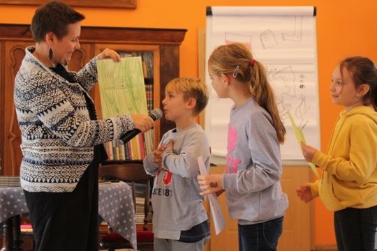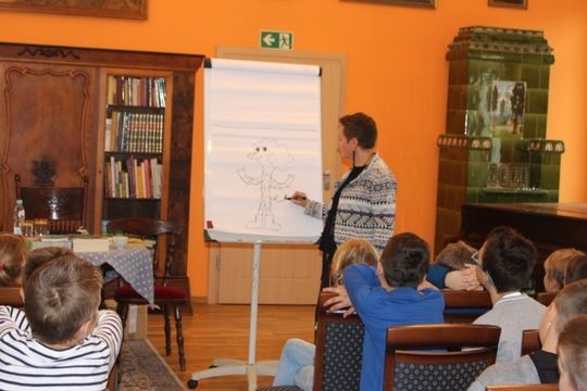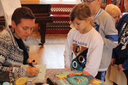 Wspólnie stworzyliśmy miłego bohatera, któremu nadaliśmy imię Gilda. Spotkanie przebiegło w wesołej i pełnej ekscytacji atmosferze. Po spotkaniu można było zakupić książki i poprosić ich autorkę o autograf.