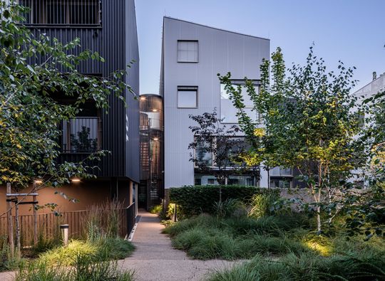 – Staraliśmy się, aby intensywność zabudowy została zrównoważona wszechobecną zielenią, która pojawia się na elewacjach, stropodachach i tarasach. W efekcie pierwotnie niemal całkowicie zabetonowana działka zmieniła się w intensywnie zazielenioną mieszkalną enklawę – mówi architekt.
