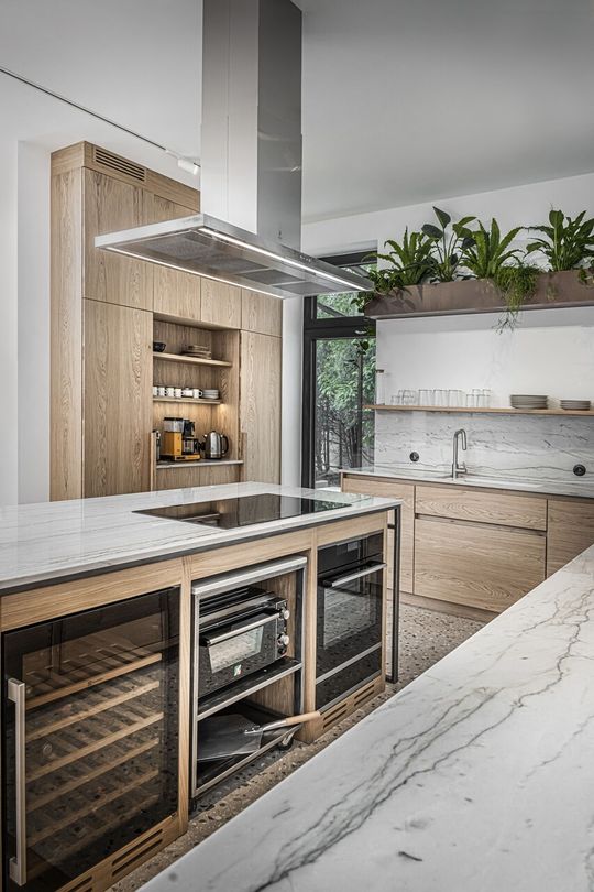 - Detale decydują o jakości przestrzeni. Systemy cargo dedykowane przechowywaniu przypraw czy desek do krojenia pozwalają utrzymać porządek i jednocześnie zapewniają szybki dostęp do najczęściej używanych akcesoriów. Równie istotne są rozwiązania ukrywające sprzęty kuchenne – takie jak fronty z podnośnikiem otwierane do góry, za którymi kryją się wysuwane półki z urządzeniami. Dzięki temu kuchnia zachowuje minimalistyczny charakter, a jednocześnie pozostaje w pełni funkcjonalna.