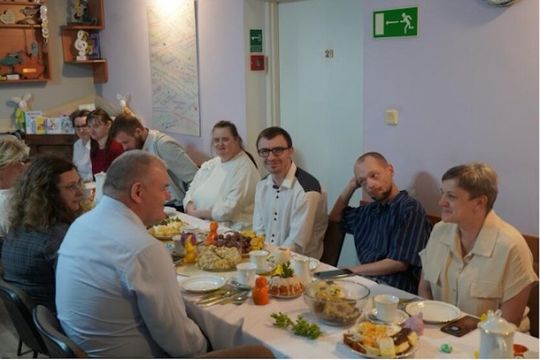 Wspólny posiłek był doskonałą okazją do złożenia świątecznych życzeń, rozmów oraz integracji w wyjątkowej, rodzinnej atmosferze. Wicestarosta podziękował za zaproszenie, życząc wszystkim obecnym spokoju, zdrowia oraz nadziei, którą niosą ze sobą nadchodzące Święta Zmartwychwstania Pańskiego.