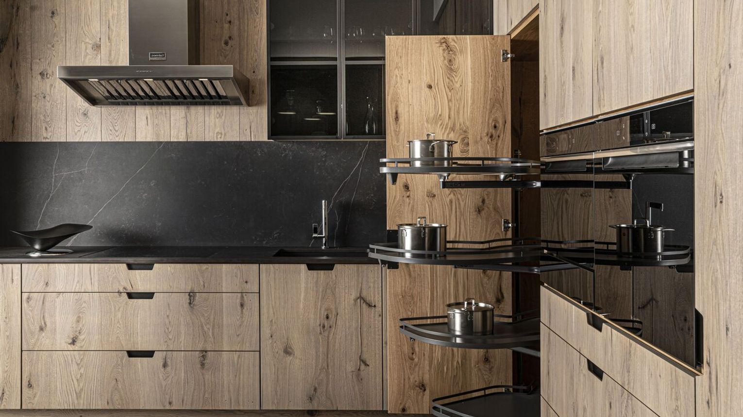 Szafki narożne przez lata stanowiły jedno z najbardziej problematycznych miejsc w kuchni – trudne do zagospodarowania i jeszcze trudniejsze w użytkowaniu. Kolejne rozwiązanie – system Le Mans – całkowicie zmienia tę perspektywę, wprowadzając półki o charakterystycznych, obłych kształtach, idealnie dopasowanych do formy naczyń i garnków. Jak wyjaśnia architektka Galerii Wnętrz DOMAR, mechanizm wysuwu pozwala na szybki i intuicyjny dostęp do zawartości, eliminując konieczność „nurkowania” w głąb szafki. To przykład rozwiązania, które łączy design z funkcjonalnością – odpowiadając zarówno na potrzeby estetyczne, jak i praktyczne.