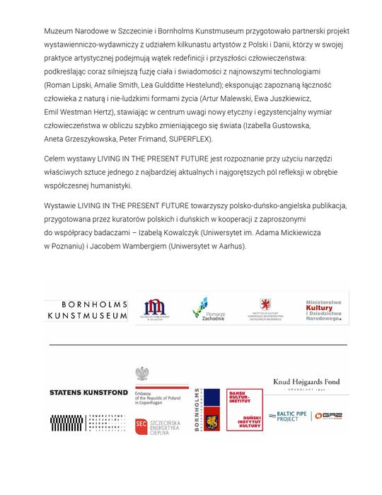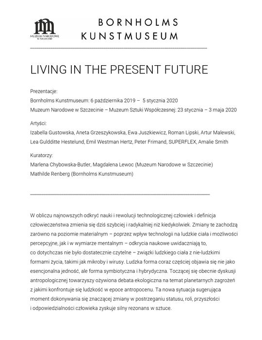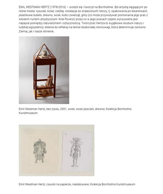 Prezentacje: Bornholms Kunstmuseum: 6 października 2019 – 5 stycznia 2020, Muzeum Narodowe w Szczecinie – Muzeum Sztuki Współczesnej: 23 stycznia – 3 maja 2020