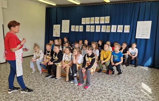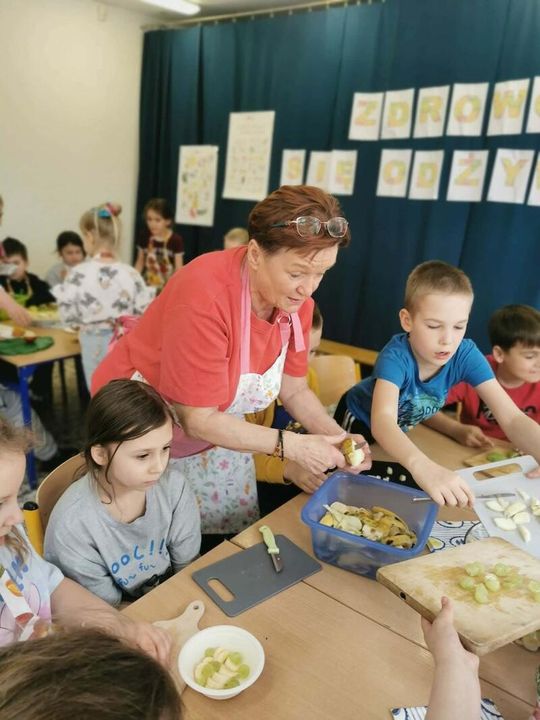 Spotkanie rozpoczęło się od projekcji filmu edukacyjnego, dzięki któremu dzieci poznały niezwykłe walory zdrowotne darów natury oraz dowiedziały się, jak odpowiedzialna i ciekawa jest praca dietetyka. Po zdobyciu teoretycznej wiedzy uczniowie zakasali rękawy i pod czujnym okiem nauczycieli zamienili się w kucharzy: