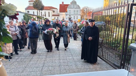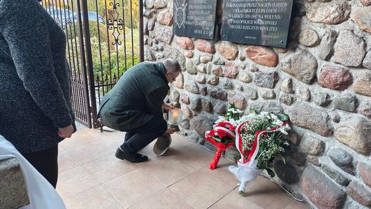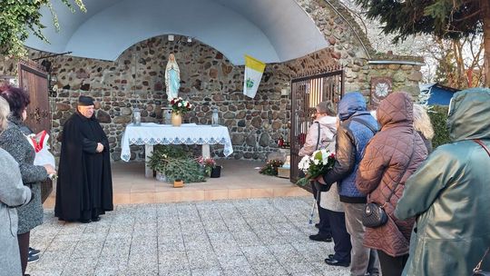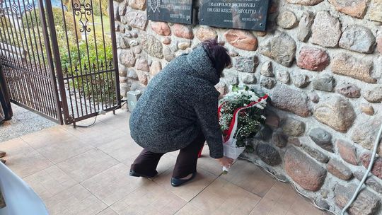 Po mszy w Grocie Maryjnej pod tablicą upamiętniającą ofiary zostały złożone wiązanki kwiatów i zapalone znicze.