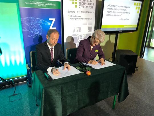 Ze strony Technikum Technologii Cyfrowych w Szczecinie umowę podpisała mgr inż. Ewa Dobrzycka - dyrektor placówki. ZUT w Szczecinie reprezentował JM Rektor ZUT w Szczecinie prof. Jacek Wróbel.