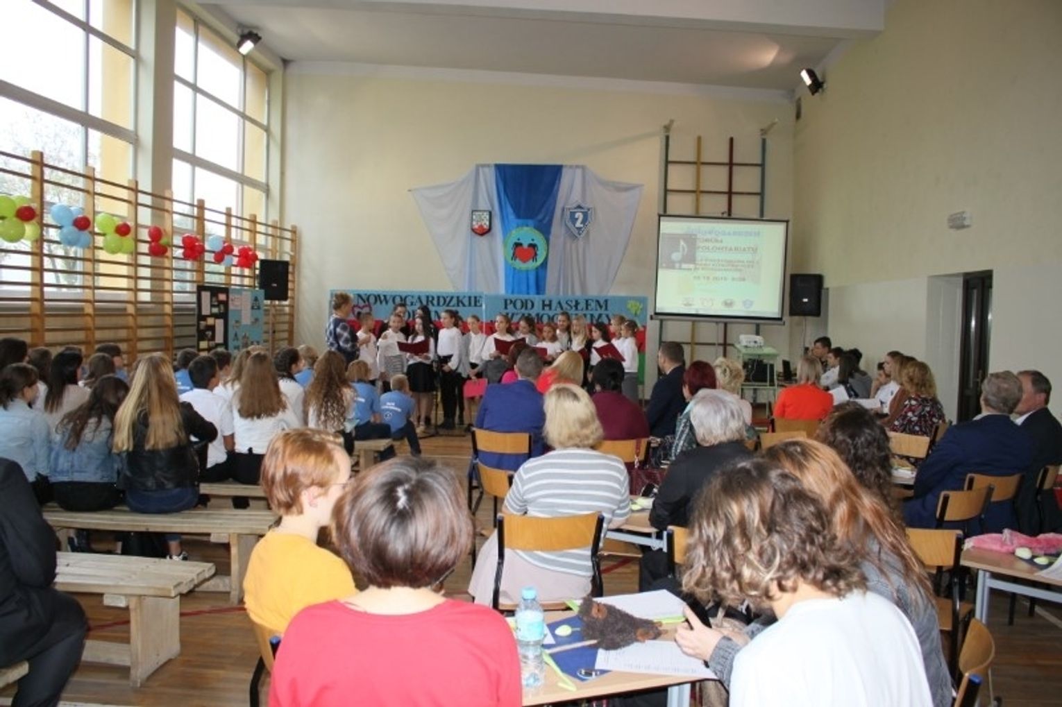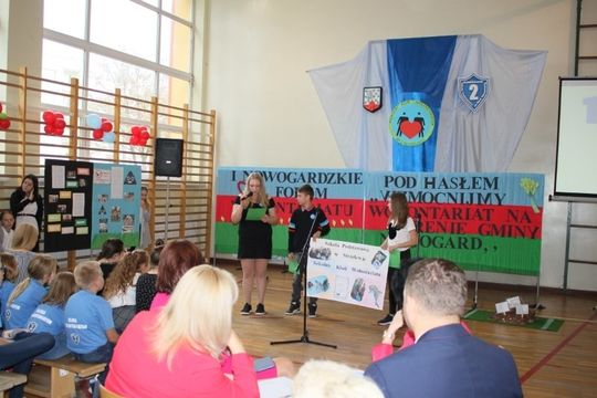 W tym niewątpliwie ważnym wydarzeniu na terenie gminy Nowogard wzięli udział przedstawiciele wszystkich nowogardzkich szkół oraz SP z Długołęki, Orzechowa, Strzelewa, Przedszkola Miejskiego nr 4 w Nowogardzie, byli wolontariusze – absolwenci SP2, a także przedstawiciele instytucji i stowarzyszeń, z którymi wolontariusze z SP2 współpracują w tym z-ca burmistrza Nowogardu Krzysztof Kolibski, przedstawiciele Stowarzyszenia POLITES i Regionalnego Centrum Wolontariatu w Szczecinie z Katarzyną Michałek i Eweliną Sobecką, dyrektor OPS w Nowogardzie Dorota Maślana, radny powiatu goleniowskiego, dyrektor Samodzielnego Publicznego Szpitala Rejonowego w Nowogardzie Kazimierz Lembas; radna powiatu goleniowskiego, dyr. Miejskiej Biblioteki Publicznej Aneta Wysoszyńska, dyrektor Nowogardzkiego Domu Kultury Aneta Drążewska; prezes Nowogardzkiego Uniwersytetu III Wieku, Wanda Obrębska i in.