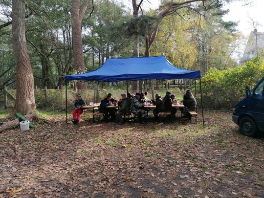 Po zawodach nastąpiło wręczenie nagród,pucharów, upominków oraz pamiątkowych statuetek przygotowanych za wkład w prace koła w 2019 roku. Podsumowano i wyłonieno najlepszego zawodnika w Klasyfikacji Pucharowej sezonu 2019. Na strudzonych czterogodzinną rywalizacją czekało ciasto, pyszna grochówka, chleb ze smalczykiem domowej roboty. Te smaczne potrawy przygotowane zostały przez Panią Katarzynę Zinkiewicz oraz Ewę i Halinę Kazubek które w debiucie gotowania na tak dużą skalę spisały się znakomicie - serdeczne dzięki!!!.