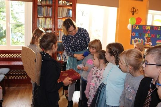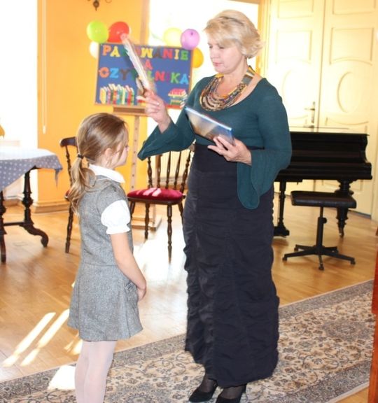 Słowa powitania zostały wypowiedziane przez bibliotekarkę Karolinę Kurczewską. Natomiast do częstych odwiedzin naszej biblioteki miał zachęcić wiersz pt; „Zaproszenie”. Na widowni zasiedli pierwszoklasiści z wychowawcami oraz goście z zaprzyjaźnionej z nami gminy Wandlitz. Scenariusz uroczystości uświetniła inscenizacja pt; „Moliki książkowe” w wykonaniu uczennic ze Szkoły Podstawowej nr 1. W tych szczególnych dniach spotkaliśmy się, aby dostąpić zaszczytu pasowania na czytelnika Biblioteki Publicznej im. Marii z Czartoryskich Wirtemberskiej i stać się honorowymi posiadaczami karty bibliotecznej.