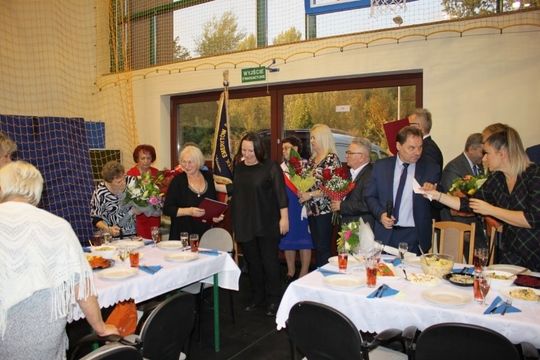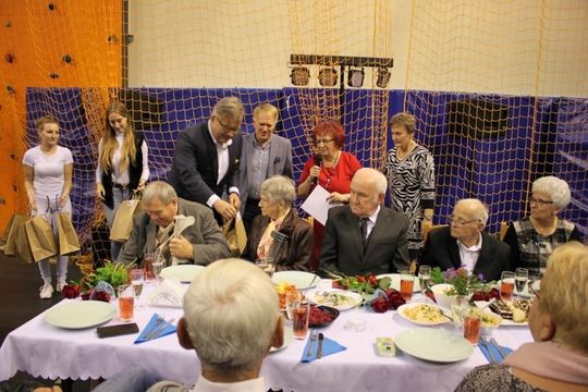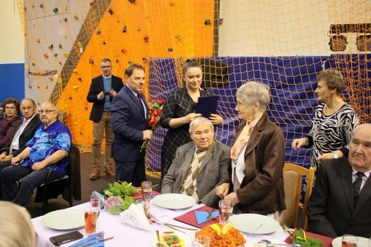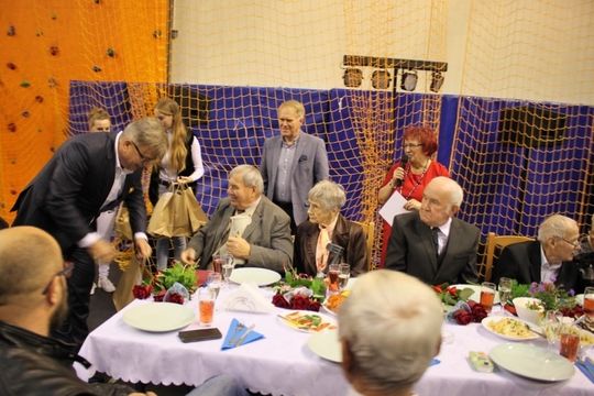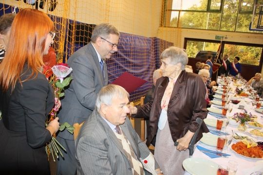 Były listy gratulacyjne dla jubilatów, kwiaty i upominki a nawet okolicznościowe torty i fotobudka w której można było zrobić pamiątkowe zdjęcie.