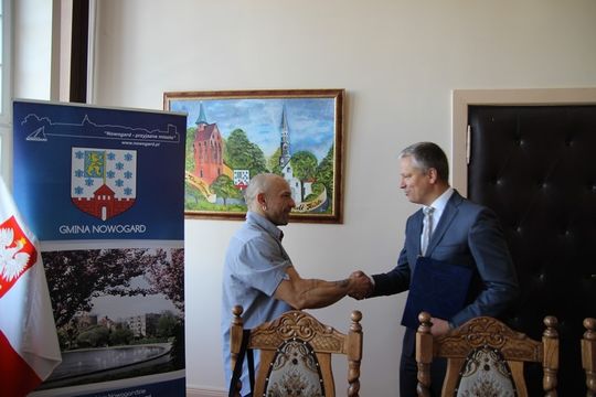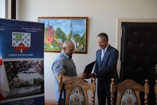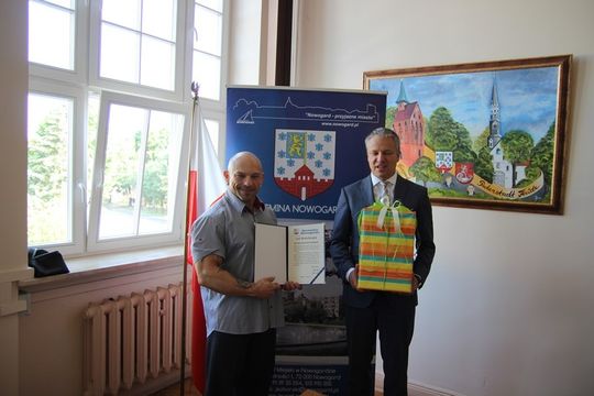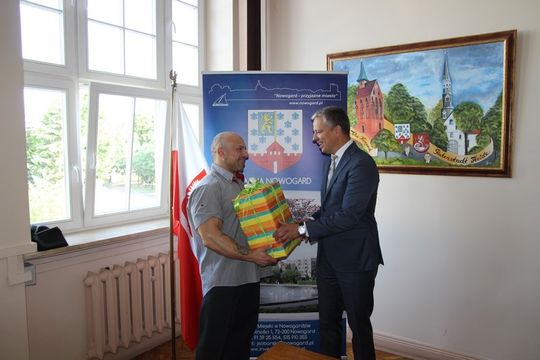 W czwartek 17 maja br. mistrz gościł w Urzędzie Miejskim w Nowogardzie gościł gdzie otrzymał z rąk burmistrza Roberta Czapli gratulacje i podziękowania za dotychczasową i wieloletnią godną reprezentację Miasta i Gminy Nowogard na europejskiej arenie sportowej. Do gratulacji przyłączył się Szymon Pilipczuk z Wydziału Rozwoju Lokalnego, Funduszy, Kultury i Sportu.