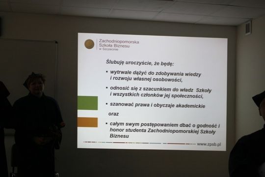 Zgodnie z tradycją podczas inauguracji odbyła się graduacja absolwentów. Żegnającym się z uczelnią, dyplomy ukończenia studiów wręczyła dziekan ZPSB w Gryficach dr Grażyna Maniak. Następnie odbyła się immatrykulacja studentów I roku. Uroczystość była również okazją do podsumowania 15 lecia funkcjonowania gryfickiego wydziału, okolicznościowych wystąpień. Wydział z roku na rok może poszczycić się kolejnymi sukcesami świadczącymi o wysokiej jakości kształcenia. Świadczyć o tym może wynik konkursu na najlepszą pracę dyplomową. W skali całej uczelni die nagrody przypadły absolwentom z Gryfic. Na kierunku pedagogika drugie miejsce uzyskała praca dyplomowa Agnieszki Kaniewicz pt. Kształtowanie rozwoju społeczno-emocjonalnego edukacji wczesnoszkolnej w koncepcji planu Daltońskiego. Na kierunku ekonomia pierwsze miejsce zajęła praca Urszuli Rzepkowskiej pt. Procedury i przebieg połączenia spółek Grupy Kapitałowej SEC.