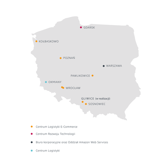 w Gdańsku i oddziale Amazon Web Services w Warszawie. Obecnie w Gliwicach powstaje kolejne, ósme już, Centrum Logistyki