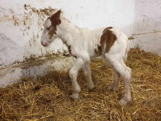 Matką zwierzęcia jest 8 - letnia Milli. Klacz rasy Tinker została zakupiona od prywatnego hodowcy we wrześniu br. Ojciec małego ogiera jest nieznany.
