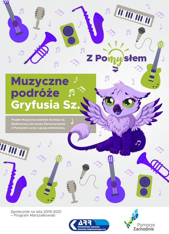 Projekt "Muzyczne podróże Gryfusia Sz." finansowany jest z programu „Społecznik na lata 2019-2021 - Program Marszałkowski”