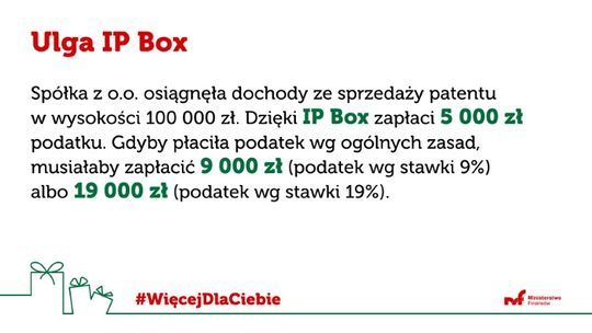 Wspieramy innowacyjne firmy, dlatego obniżyliśmy stawkę CIT i PIT dla dochodów z kwalifikowanych praw własności intelektualnej do 5 proc. podstawy opodatkowania (tzw. ulga IP Box).