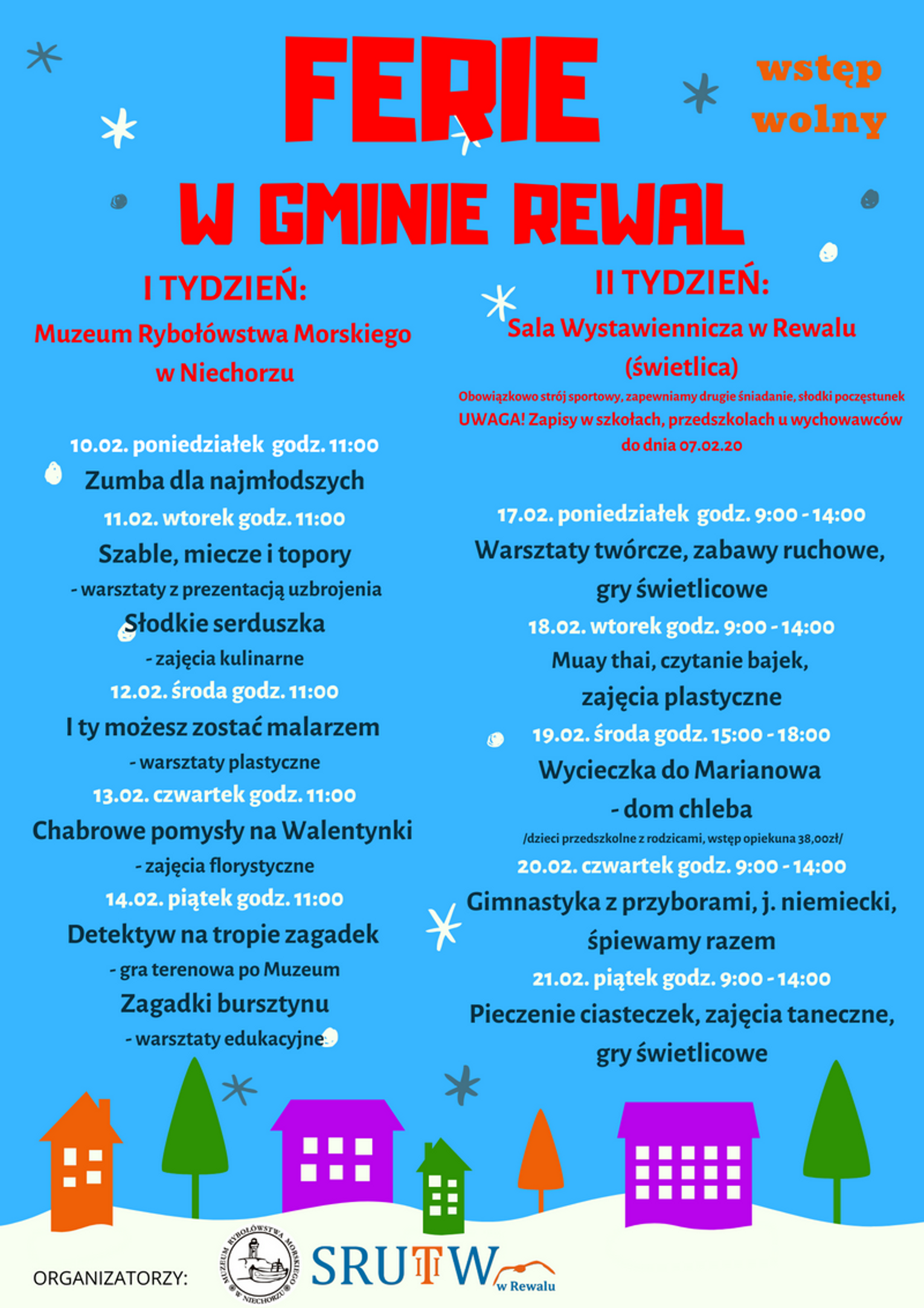 W drugim tygodniu ferii zapraszamy do Sali Wystawienniczej w Rewalu (dawna świetlica), gdzie Uniwersytet Trzeciego Wieku w Rewalu przygotował równie atrakcyjny program dla uczniów: