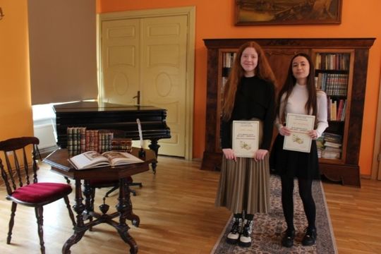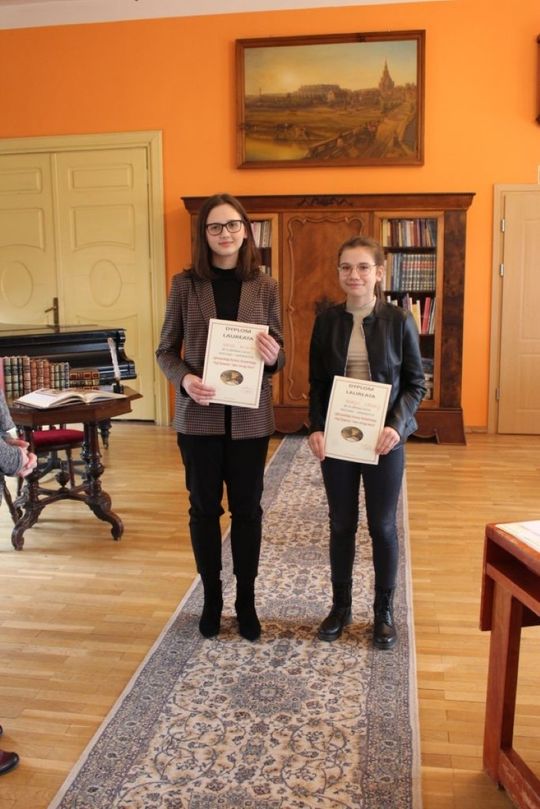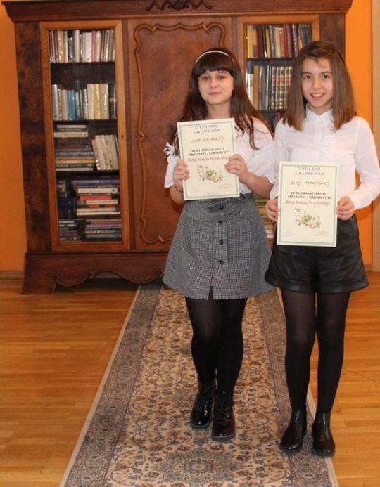 Martyna Mielniczuk i Nawojka Cirocka reprezentujące Zespół Szkół im. Zbigniewa Herberta w Trzebiatowie, opiekun Justyna Kozłowska.