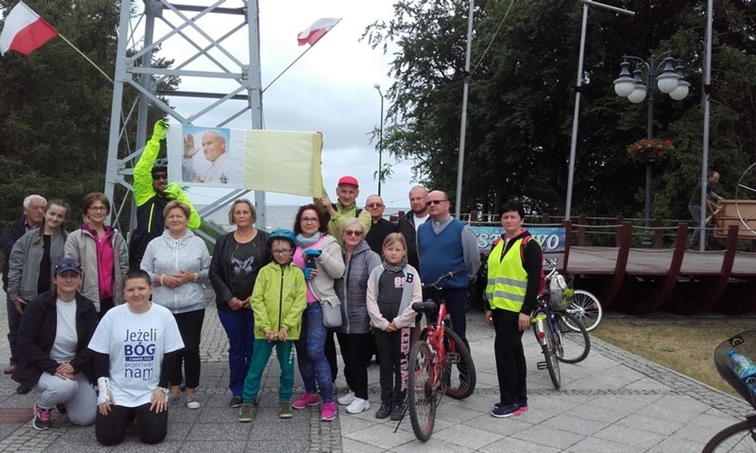 Pielgrzymi przywożą ze sobą relikwie świętego Jana Pawła II, którym wierni oddają cześć podczas mszy świętej odbywającej się u stóp krzyża w łodzi. W tym roku pątnicy przybyli pod krzyż, aby modlić się za Ojczyznę z okazji setnej rocznicy odzyskania Niepodległości stąd też hasło pielgrzymki "Dla Niepodległej". Pielgrzymując do Pustkowa rowerzyści z Konarzewa nawiedzili świątynie w Rewalu i Trzęsaczu. Po mszy świętej pątnicy i goście wspólnym zdjęciem upamiętnili czas pielgrzymowania i udali się do Dworku Prawdzic w Niechorzu na poczęstunek. Uczestnicy pielgrzymki przekazują podziękowania dla wszystkich, którzy przyczynili się do jej zorganizowania, a przede wszystkim gospodarzowi miejsca księdzu Krzysztofowi Przybyło, księdzu Kazimierzowi Olejniczakowi, księdzu Marcinowi Smolidze oraz właścicielom Dworku Prawdzic.