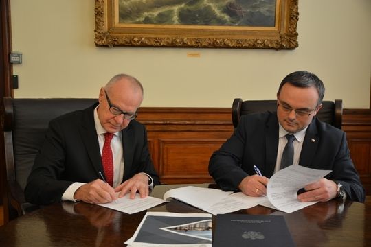 Foto 1 - 19 listopada 2018 - podpisanie porozumienia pomiędzy wojewodą zachodniopomorskim Tomaszem Hincem, a prezesem Regionalnej Izby Obrachunkowej w Szczecinie Bogusławem Staszewskim