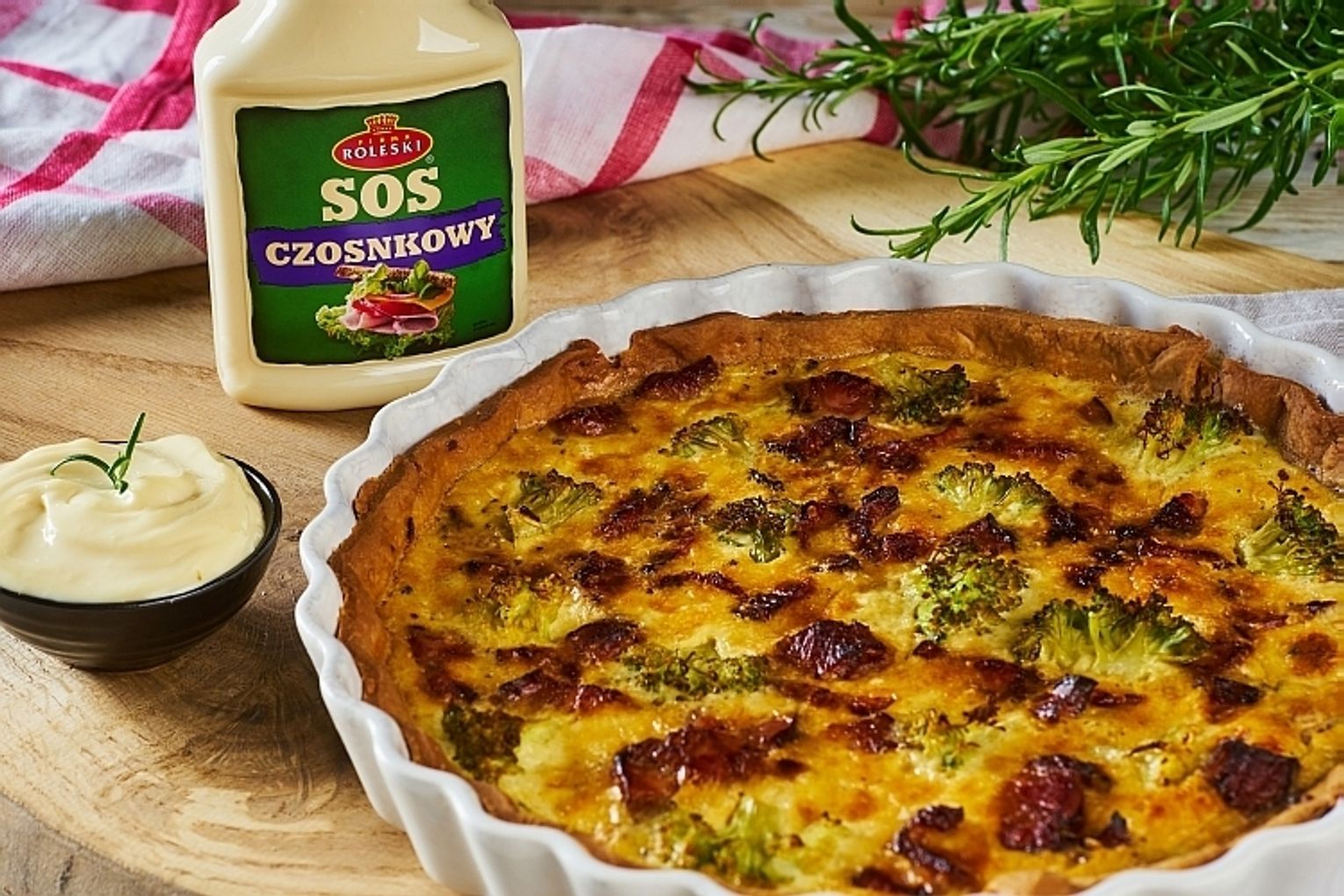 Quiche z bekonem i brokułem to propozycja dania, które świetnie sprawdzi się jako obiad, kolacja czy przekąska dla gości. Dodatek Sosu czosnkowego Roleski sprawi, że potrawa nabierze intensywnie aromatycznego posmaku.