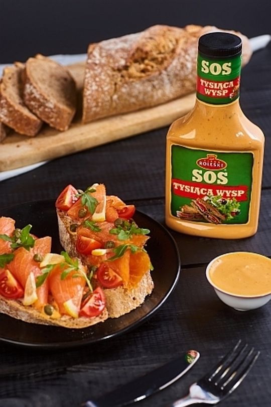 Sos Tysiąca Wysp Roleski to doskonałe dopełnienie grzanek, kanapek lub burgerów. Dzięki swej aksamitnej konsystencji idealnie współgra również z sałatami, nadając im wyrazistości. Ten kultowy dodatek to nie tylko idealna kompozycja czerwonej papryki, przypraw oraz śmietany, ale przede wszystkim prosty skład, pozbawiony konserwantów, glutenu oraz GMO. Naszą ulubioną opcją na wykorzystanie Sosu Tysiąca Wysp Roleski jest polanie nim chrupiących grzanek połączonych z łososiem i słodkimi pomidorkami koktajlowymi. Danie możemy zaserwować na śniadanie, kolację oraz jako dodatek do grilla. Takiemu połączeniu nie oprze się żaden smakosz!