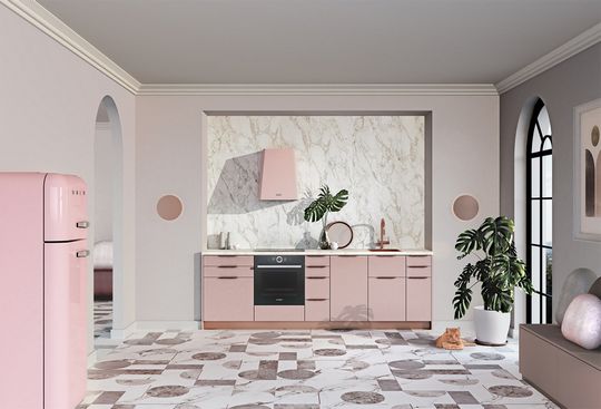 Płyty meblowe ernestrust dostępne są także w wielu pastelowych kolorach. Jednym z objawień aktualnej kolekcji jest przygaszony odcień różu. Jest to oryginalny kolor, na który decyduje się coraz więcej osób lubiących odważne i zaskakujące aranżacje. Kuchnia w kolorach pastelowego różu jest niezwykle elegancka, nowoczesna i unikatowa.