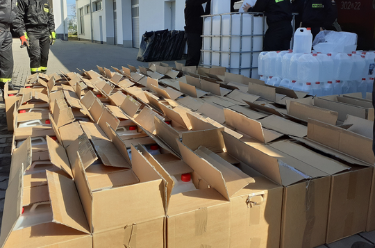 5.990 litrów nielegalnego alkoholu etylowego, który został zajęty przez Zachodniopomorski Urząd Celno-Skarbowy w Szczecinie podczas kontroli nielegalnej produkcji i dystrybucji alkoholu trafiło do Komendy Wojewódzkiej Straży Pożarnej w Szczecinie.