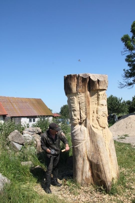 Ponadto to wspaniały symbol – wizytówka gospodarstwa a jako, że w ofercie mają też turnusy edukacyjne dla młodzieży to jeszcze i inspiracja do lekcji historii. Rzeźba jest już na ukończeniu i cieszy się dużym zainteresowaniem okolicznych mieszkańców. Pozostało jeszcze umieszczenie jej na docelowym miejscu i zabezpieczenie przed szkodliwymi wpływami otoczenia. Jak będzie już wszystko gotowe, wrócimy do Łopianowa aby zaprezentować w pełnej krasie zarówno dzieło Wojciecha Bernasińskiego jak i być może inicjatora tego przedsięwzięcia.