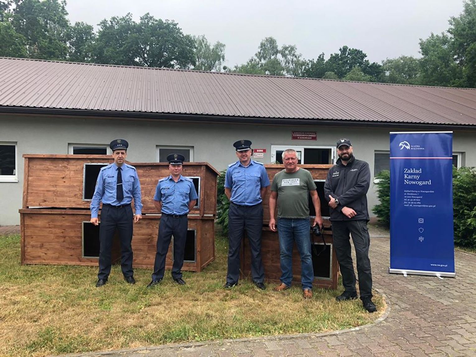 w Nowogardzie z prośbą o wykonanie kilku bud dla pisaków ze schroniska. Odpowiedź mogła być tylko jedna – oczywiście pomożemy. W efekcie powstało 6 solidnych i funkcjonalnych bud wykonanych zgodnie z projektem przesłanym przez kierownictwo schroniska. Przekazanie ich przez delegację funkcjonariuszy z ZK Nowogard było prawdziwą przyjemnością.