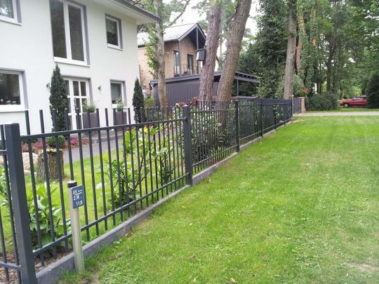 - W pierwszej z nich prowadzi się ogrodzenie tak, aby w górnej części zachować poziom, a powstałe różnice wysokości niweluje się, zamawiając większe (często skośne przęsła) lub budując odpowiednią podmurówkę – wyjaśnia specjalista. - Metoda ta stosowana jest najczęściej przy ogrodzeniach frontowych. Skos równoległy do pochyłości gruntu to metoda polegająca na prowadzeniu ogrodzenia zgodnie z nachyleniem działki. Uzyskujemy wówczas u góry linię biegnącą pod kątem. W ten sposób zwykle montuje się ogrodzenia z siatki. W trzecim przypadku, czyli „schodków” dzielimy ogrodzenie na krótkie odcinki i każdy z nich obniżamy o określoną wartość. Tak zamontowane przęsła tworzą kaskadę. Jest to metoda uniwersalna i stosuje się ją zarówno do ogrodzeń frontowych, jak i panelowych.