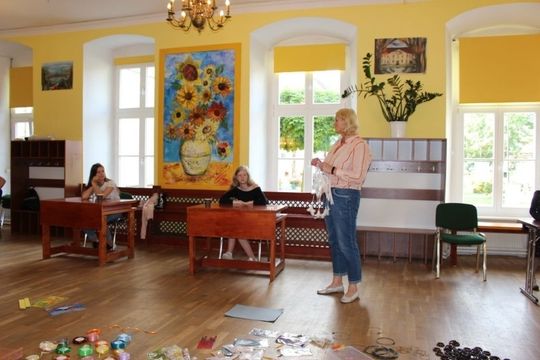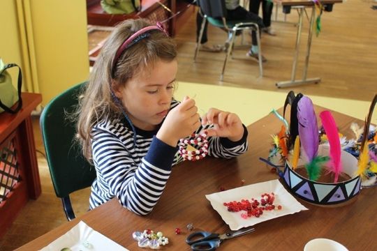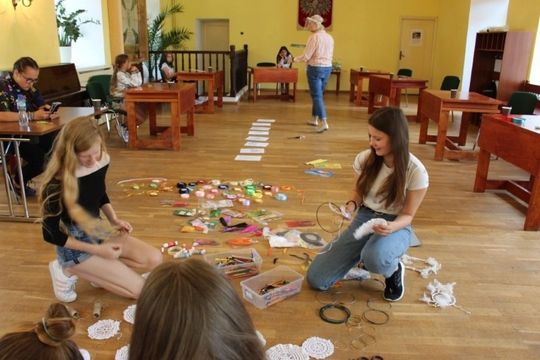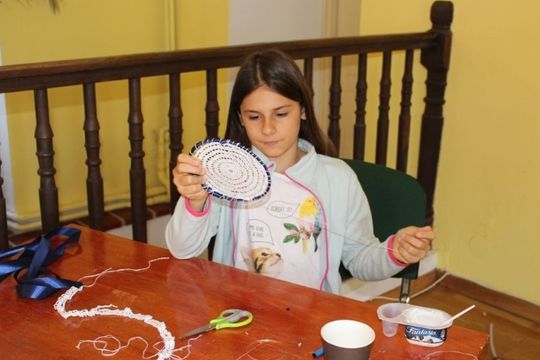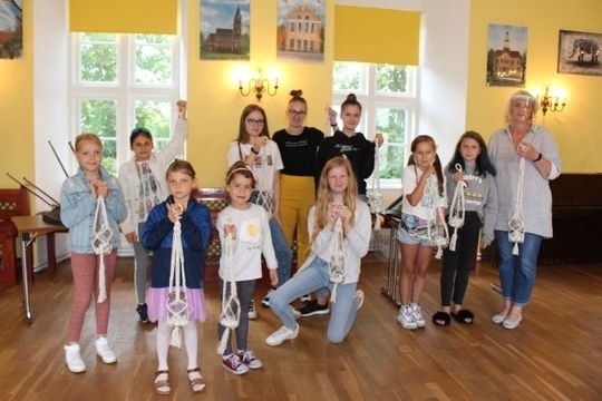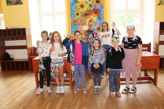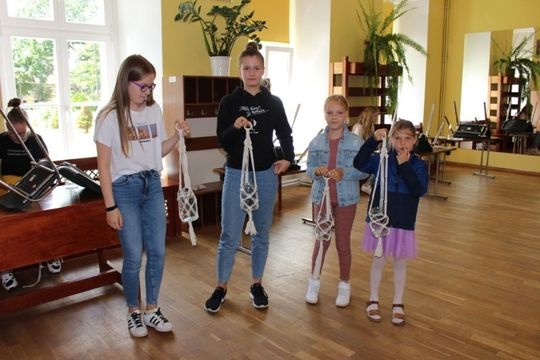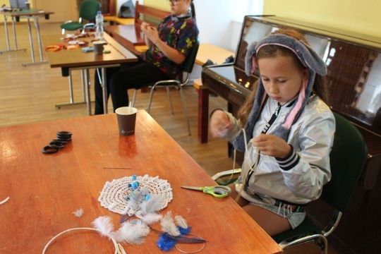 Podczas zajęć artystycznych uczestnicy pod kierunkiem p. Renaty Jankowskiej wyplatali ozdobne lampiony ze sznurka splotem makramowym, następnie tworzyli łapacze snów oraz pióropusze ozdabiając je tasiemkami, koralikami, piórkami, a także biżuterię. Działaniom artystycznym towarzyszyły również zajęcia edukacyjne z elementami profilaktyki uniwersalnej.