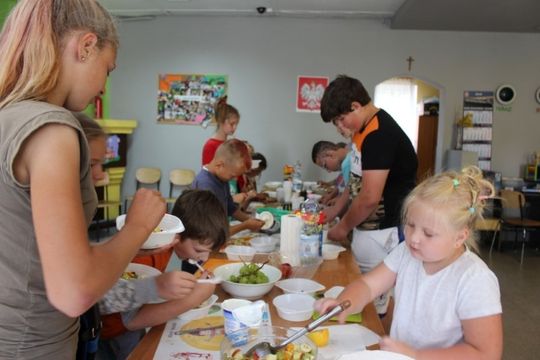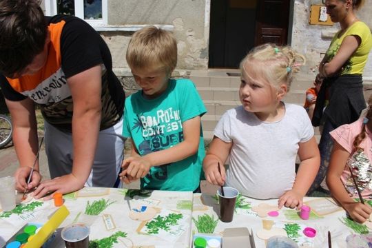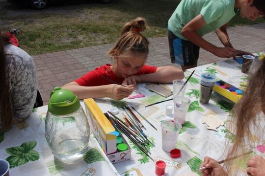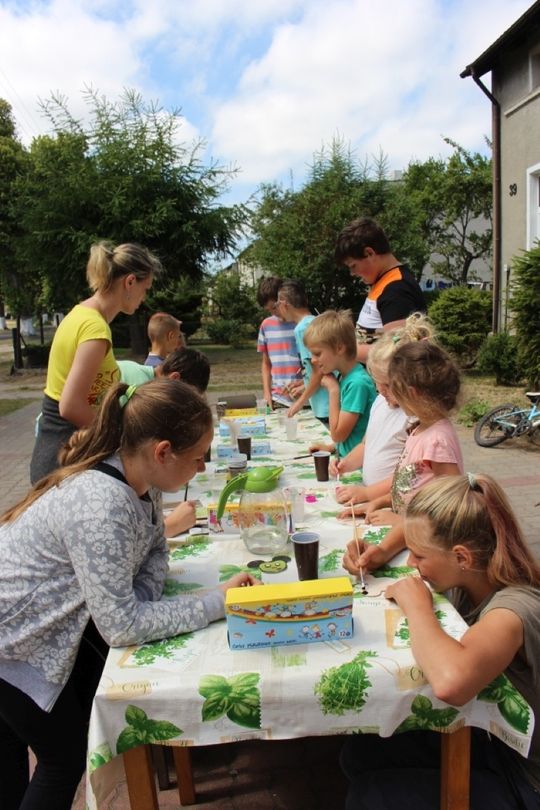 5 lipca 2018r. symboliczne PODWÓRKO w Sadlnie stało się miejscem, gdzie dzieci wraz z rodzicami mogły spędzić w interesujący sposób czas wolny. Wysłuchały wierszyków o zwierzątkach, które zaprezentowała Dyrektor Trzebiatowskiego Ośrodka Kultury Renata Teresa Korek. Rozmawialiśmy o tym jak należy dbać o środowisko, co to jest ekologia, jak każde dziecko może troszczyć się o naszą planetę. Po wysłuchaniu treści utworów uczestnicy „Czytających Podwórek” farbami kolorowali drewniane szablony, które przeistaczały się w barwne dzieła sztuki. Przygotowaliśmy również kolorowy posiłek w formie sałatki owocowej i witaminowych inspiracji na bazie jogurtu naturalnego, bakalii i owoców, które znikały w magicznym tempie.