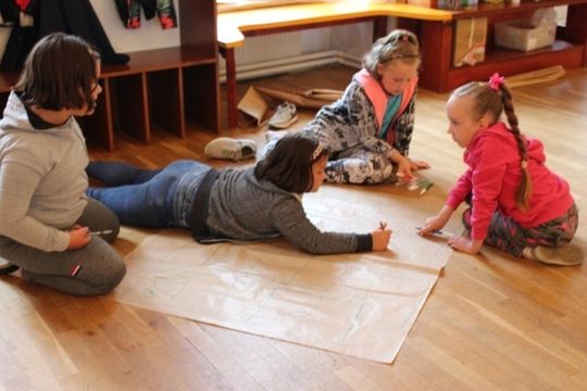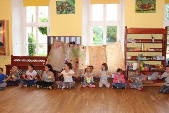 Jak pokazać dziecku , że na podwórku można bawić się lepiej niż przed telewizorem, czy grając na komputerze, play station lub komórce. Bo choć dla nas zabawa na podwórku była najwspanialszym z możliwych sposobów spędzenia wolnego czasu, dla wielu dzieci podwórko jest po prostu nudne. Podczas zajęć dzieci poznały stare i nowe zabawy podwórkowe. Były to m.in.: „Jawor, jawor”, „Głowa, ramiona”. Okazało się , że w to co bawiły się ich babcie, mamy, świetnie się sprawdza również teraz. Wiersze J. Tuwima „Dyzio marzyciel”, „Gdyby”, „Cuda i dziwy” przeniosły dzieci do Krainy Wyobraźni. Nauczyły się piosenki, którą można śpiewać w nieskończoność „Było morze”. A na koniec każde z nich stworzyło własne „okno wyobraźni”, za którym znalazł się ich magiczny, wymyślony świat.