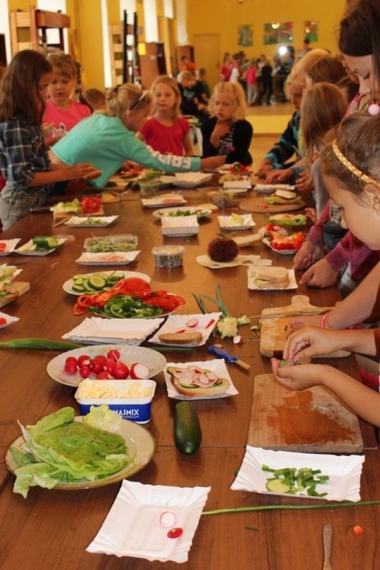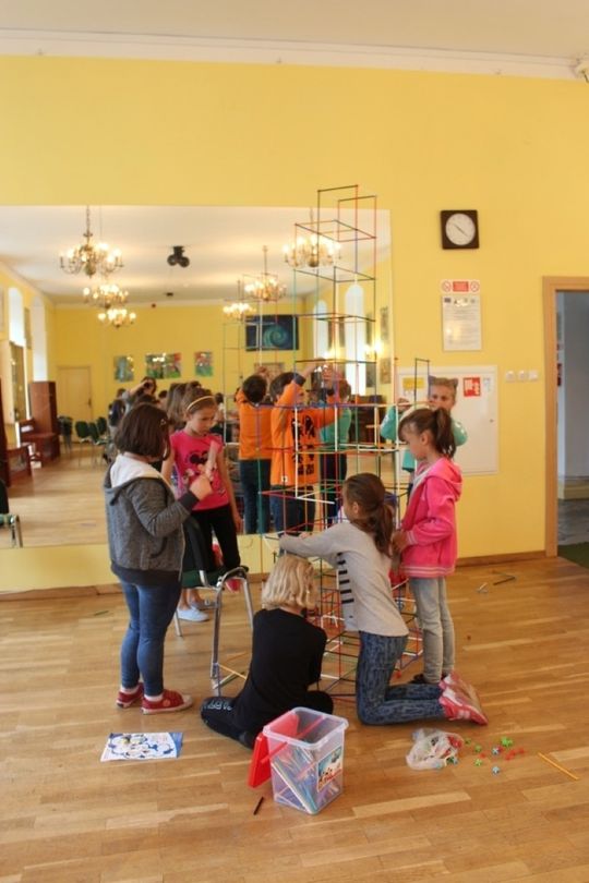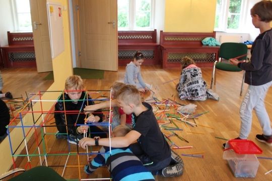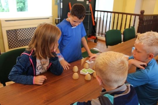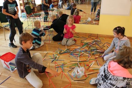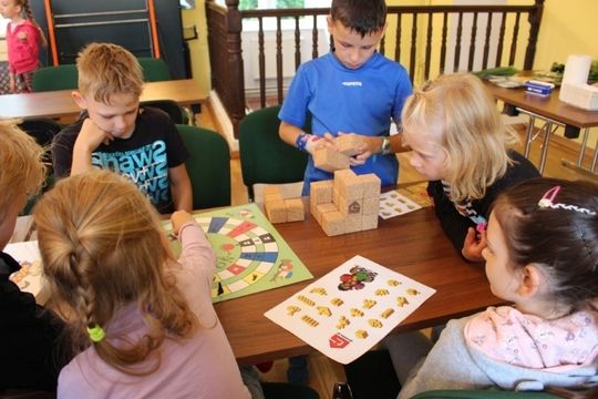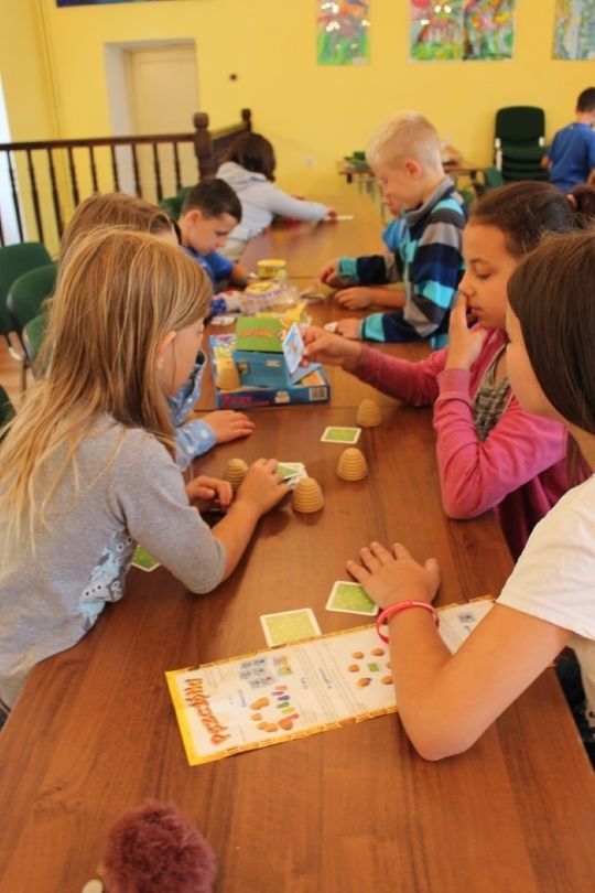 Pokazujemy dzieciom różnorodne formy spędzania czasu także te wymagające skupienia, pracy, logicznego myślenia. Chcemy pokazać dzieciom ,że bez komputera i telefonu można się świetnie bawić , w trakcie turnieju gier królowały więc gry „bez prądu”, takie jak: „Dobble”, „Halli Galli”,”Pszczółki”, Kostki z korka (Groteka). Zabawa z Bampami rozwija w dzieciach zdolność pracy w grupie w której wzajemnie się motywują i wymyślają nowe, niepowtarzalne rozwiązania. Co więcej, dzieci tworząc figury uczą się podejmowania samodzielnych decyzji, które powstały przy pomocy ich wyobraźni. Rozwija ekspresję , wyobraźnię twórczą, myślenie abstrakcyjne, fantazję .Świetna propozycja na kreatywną zabawę. Przestrzenne układanki logiczne i gry, klocki z korka to rozrywka intelektualna dla wszystkich, edukacja, rozwój postrzegania przestrzennego, rozwój wyobraźni. Zabawa była przednia! A na zakończenie przygotowaliśmy przepyszne, kolorowe i zdrowe kanapki z dużą ilością warzyw, kiełków ,zieleniny.