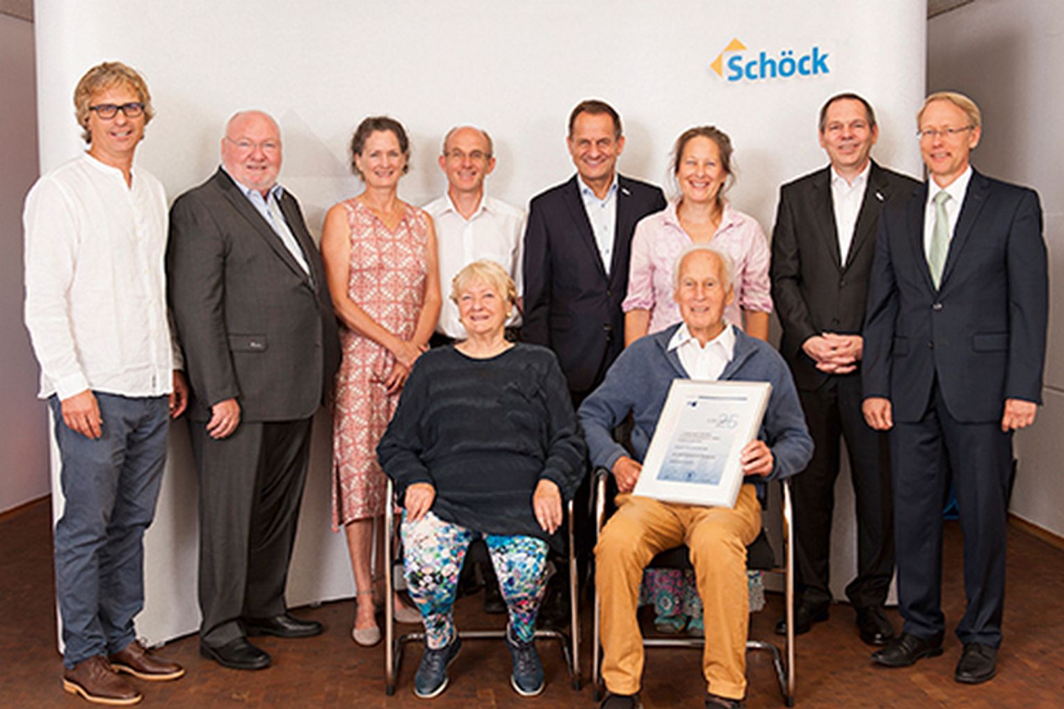 Schöck AG obchodził w tym roku 25. rocznicę działalności. „Chciałbym zagwarantować dalsze istnienie spółek grupy, niezależnie od tego, czy członkowie mojej rodziny przejmują obowiązki zarządcze.“ – tak 28 maja 1993 r. Eberhard Schöck komentował swój pomysł założenia Schöck AG. Zainteresowanie potencjałem produktowym, jak i ludzkim sprawiło, że firma Schöck od początku swojego istnienia angażowała się w sprawy społeczne i gospodarcze. W tym samym czasie, gdy Eberhard Schöck KG został przekształcony w spółkę akcyjną, twórca firmy założył fundację non-profit Eberhard-Schöck, która wykorzystuje część udziałów założyciela. Od ponad dwudziestu lat firma wspiera rozwój handlu w Europie Wschodniej, przyznając różnego rodzaju nagrody i wyróżnienia.