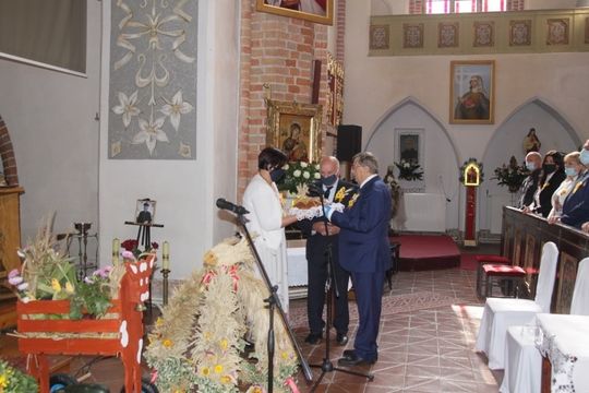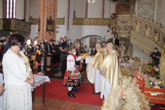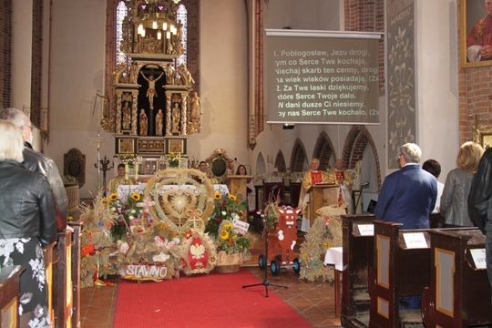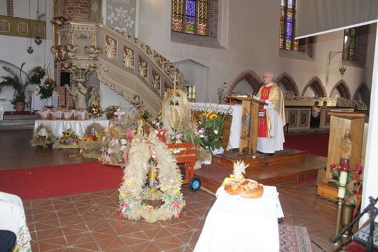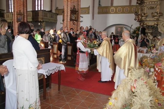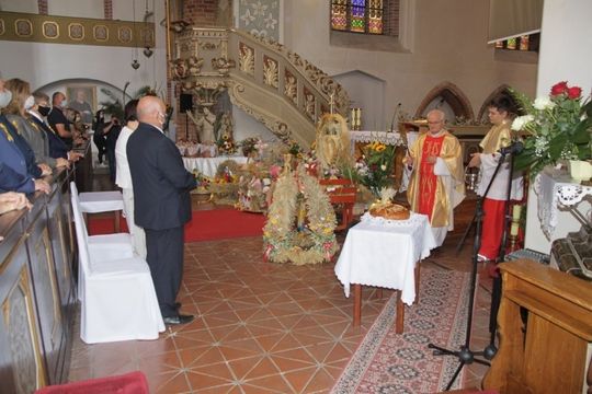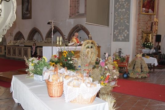 W trakcie mszy Ks. Dziekan Kazimierz Półtorak poświęcił wieńce i dary dożynkowe oraz pobłogosławił tegoroczne plony i trud rolników.