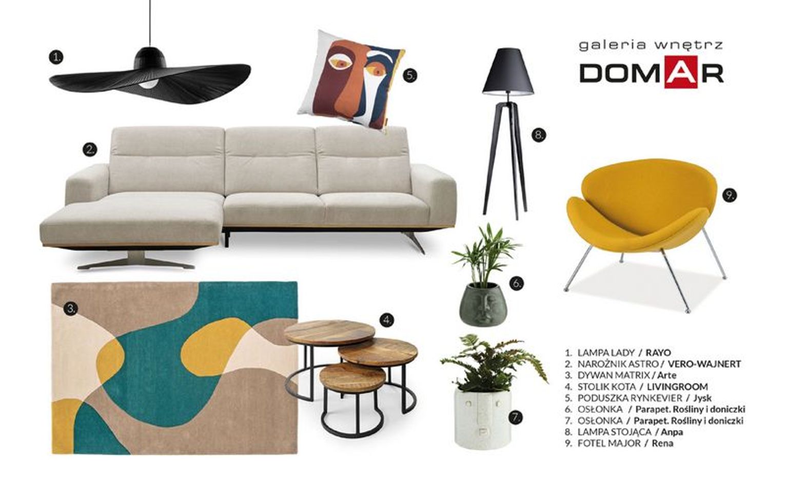 Podejmując się zaaranżowania przestrzeni domu czy mieszkania, zawsze mamy wiele różnych wyobrażeń o tym, jak powinny wyglądać nasze wymarzone cztery kąty. Jednak zderzenie oczekiwań i realiów bywa czasem bolesne. Dlaczego? Ponieważ nie każdy posiada umiejętności odpowiedniego zagospodarowania metrażu, zestawiania kolorów i stylów aranżacyjnych, a także zapanowania nad gabarytami mebli. Co w takim wypadku zrobić? Jak doradza Aldona Mioduszewska, w trudach procesu aranżowania naszego lokum z pomocą przychodzi zawierający moodboardy katalog wnętrzarski DOMAR: