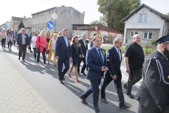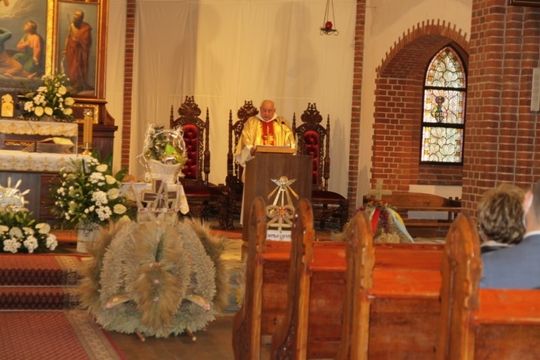 Barwny, choć nie tak liczny jak zwykle poprowadziła Młodzieżowa Orkiestra Dęta w Płotach. W rejonie hali sportowej zostały wyeksponowane wieńce dożynkowe z gmin powiatu gryfickiego. Komisja konkursowa powiatowego konkursu na najładniejszy dożynkowy tradycyjny wieniec wnikliwie oceniła ich walory estetyczne i tradycjonalne. Ocena była trudna, bo wszystkie wieńce praktycznie zasługiwały na pierwszą nagrodę. Jak to w rywalizacji bywa, trzeba było wyłonić zwycięzcę.