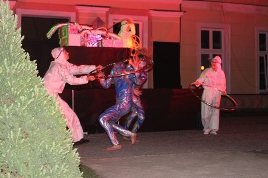Na zakończenie „Trzebiatowskiego Święta Kaszy” jak zwykle spotkanie z pełnym magii, zjaw, symbolicznych postaci spektaklem w wykonaniu Teatru Gry i Ludzie z Katowic, a w pałacowych oknach tradycyjnie ukazała się Biała Dama. Teatr Gry i Ludzie jest zespołem podróżującym. Swoje spektakle prezentuje w kraju i poza jego granicami. Repertuar teatru stanowią przedstawienia plenerowe, realizacje sceniczne oraz spektakle dla dzieci. Swoje spektakle prezentował na festiwalach i podczas innych wydarzeń w wielu miastach Polski i za granicą. Ostatnim akcentem był spektakularny i piękny pokaz sztucznych ogni w wykonaniu Firmy POL-EXPANCE Kolasiński Krzysztof, Kolasiński Marek. Prowadzenie imprezy Anna Rzepecka i Michał Ostrowski.