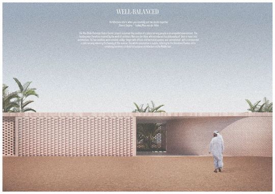 Pawilon „Well-Balanced" autorstwa Kingi Gawlik i Piotr Rajewskiego został wybrany spośród 237 prac nadesłanych na konkurs przez studentów oraz biura architektoniczne z całego świata. Para młodych architektów z ZUT zaprojektowała nowy budynek z myślą o dialogu pomiędzy architekturą a pięknymi widokami rezerwatu Al Wathba.
